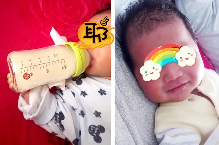 孩子出生7.2斤,51厘米,指标一切正常。为了让孩子早点习惯用奶瓶,我把母乳装在奶瓶里,也方便了随时喂养,只要孩子哭就把奶瓶塞住嘴,给多少他吃多少。